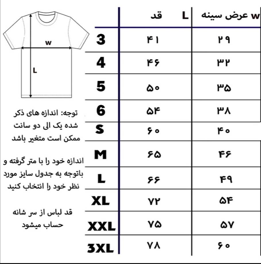 3XL ,L ,M ,S ,XL ,XXL ,سایز3 ,سایز4 ,سایز5 ,سایز6 |